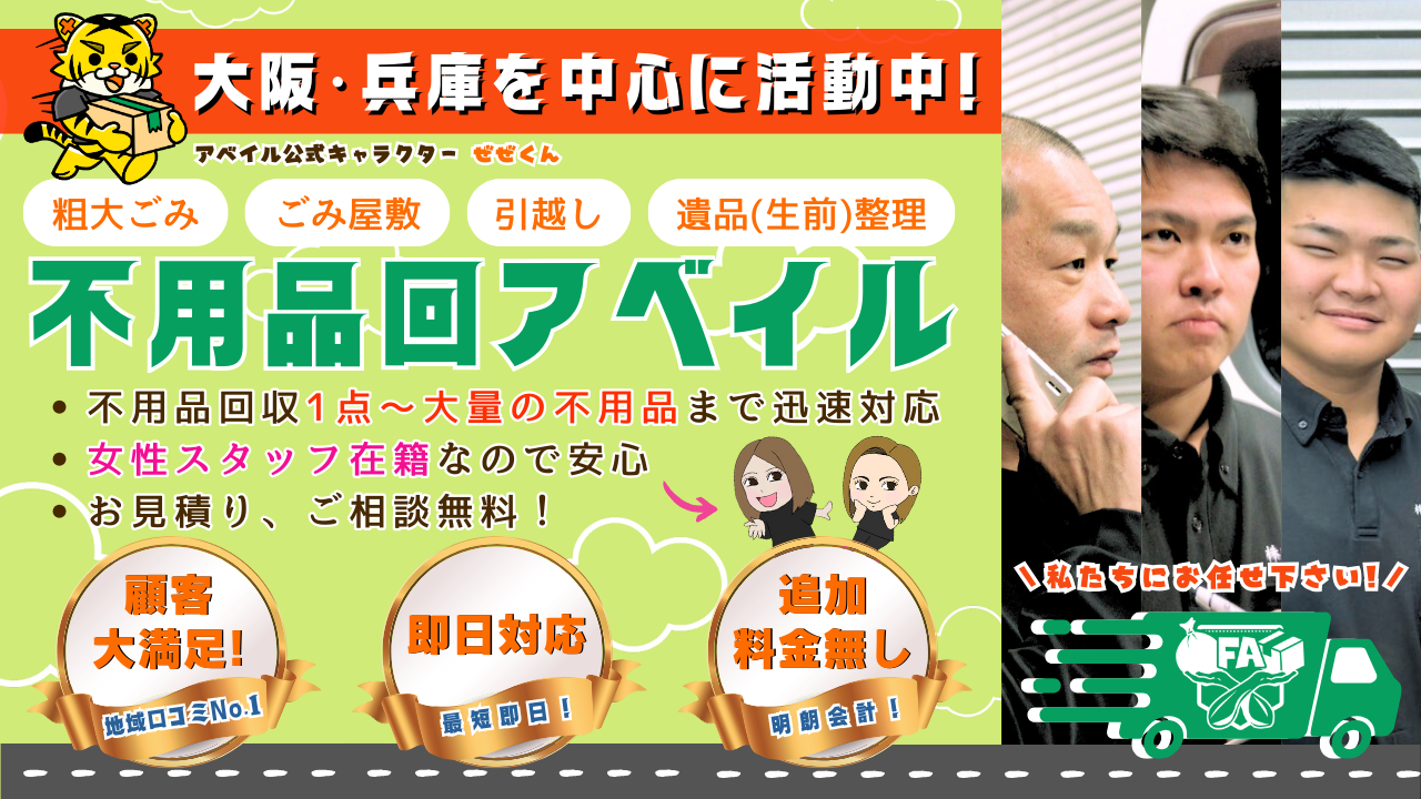 不用品回収アベイルは、回収品の再利用や買取を通じて作業コストをカット。無駄を省いた安心・納得の不用品・粗大ごみ回収を行っています。