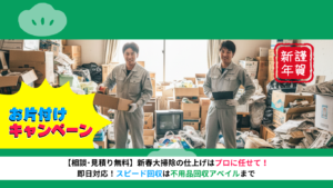 年末になると、普段開けない収納や押し入れ、棚の奥まで片づける機会が増えます。そこから出てくる不用品の量に驚く方も多いのではないでしょうか。「捨てたいのに運べない」「粗大ごみの日に間に合わない」など、処分に困ってしまい、そのまま年を越してしまうこともあります。不用品回収アベイルでは、年末に合わせた不用品回収を行っています。ご自宅・実家・オフィス・倉庫まで幅広く対応可能です。
